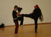 At Watford Lau Gar you will learn self defence and the basic punching and kicking techniques before progressing on to more advanced techniques, including jumping, spinning and hook kicks, as well as knife defence and weapons forms such as broad swords, staff and butterfly swords. |